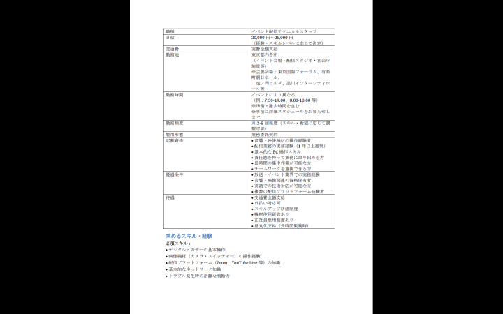 • 配信プラットフォーム(Zoom、YouTube Live等)の知識